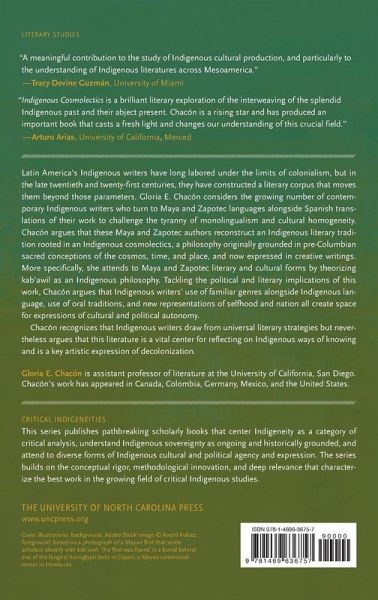 Latin America's Indigenous writers have long labored under the limits of colonialism, but in the late twentieth and twenty-first centuries, they have constructed a literary corpus that moves them beyond those parameters. Gloria E. Chacon considers the growing number of contemporary Indigenous writers who turn to Maya and Zapotec languages alongside Spanish translations of their work to challenge the tyranny of monolingualism and cultural homogeneity. Chacon argues that these Maya and Zapotec authors reconstruct an Indigenous literary tradition rooted in an Indigenous cosmolectics, a philosophy originally grounded in pre-Columbian sacred conceptions of the cosmos, time, and place, and now expressed in creative writings. More specifically, she attends to Maya and Zapotec literary and cultural forms by theorizing kab'awil as an Indigenous philosophy. Tackling the political and literary implications of this work, Chacon argues that Indigenous writers' use of familiar genres alongside Indigenous language, use of oral traditions, and new representations of selfhood and nation all create space for expressions of cultural and political autonomy. Chacon recognizes that Indigenous writers draw from universal literary strategies but nevertheless argues that this literature is a vital center for reflecting on Indigenous ways of knowing and is a key artistic expression of decolonization.