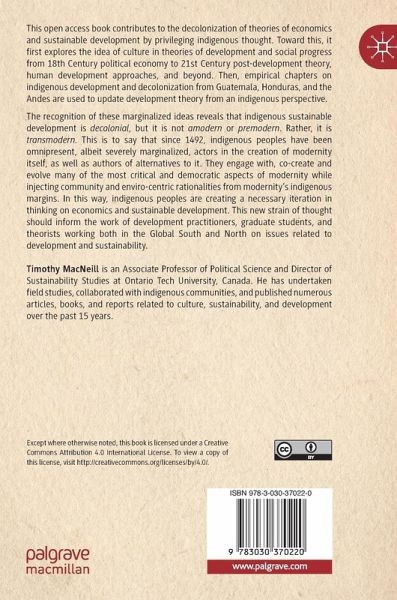 This open access book outlines development theory and practice over time as well as critically interrogates the "cultural turn" in development policy in Latin American indigenous communities, specifically, in Guatemala, Honduras, Ecuador, and Bolivia. It becomes apparent that culturally sustainable development is both a new and old idea, which is simultaneously traditional and modern, and that it is a necessary iteration in thinking on development. This new strain of thought could inform not only the work of development practitioners, graduate students, and theorists working in the Global South, but in the Global North as well.