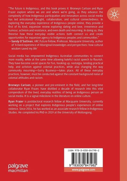 Settler societies habitually frame Indigenous people as 'a people of the past'-their culture somehow 'frozen' in time, their identities tied to static notions of 'authenticity', and their communities understood as 'in decline'. But this narrative erases the many ways that Indigenous people are actively engaged in future-orientated practice, including through new technologies. Indigenous Digital Life offers a broad, wide-ranging account of how social media has become embedded in the lives of Indigenous Australians. Centring on ten core themes-including identity, community, hate, desire and death-we seek to understand both the practice and broader politics of being Indigenous on social media. Rather than reproducing settler narratives of Indigenous 'deficiency', we approach Indigenous social media as a space of Indigenous action, production, and creativity; we see Indigenous social media users as powerful agents, who interact with and shape their immediate worlds with skill, flair and nous; and instead of being 'a people of the past', we show that Indigenous digital life is often future-orientated, working towards building better relations, communities and worlds. This book offers new ideas, insights and provocations for both students and scholars of Indigenous studies, media and communication studies, and cultural studies.