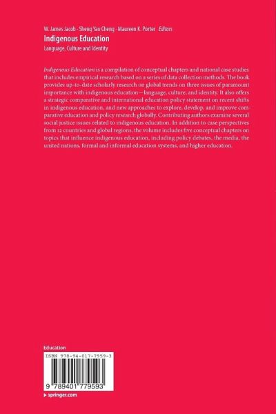 Foreword.- Preface.- 1. Global Review of Indigenous Education: Issues of Identity, Culture, and Language. W. James Jacob, Sheng Yao Cheng, and Maureen K. Porter.- Section I: Thematic Issues on Indigenous Education.- 2. Policy Debates and Indigenous Education: The Trialectic of Language, Culture, and Identity. W. James Jacob, Jing Liu, and Che-Wei Lee.- 3. ICT and Indigenous Education: Emerging Challenges and Potential Solutions. Rebecca A. Clothey.- 4. Formal and Informal Indigenous Education. Terry Wotherspoon.- 5. Indigenous Higher Education. Duane W. Champagne.- 6. Indigenous Chinese Higher Education: John N. Hawkins.- Section II: Language.- 7. Strategies for Overcoming Linguistic Genocide: How to Avoid Macroaggressions and Microaggressions that Lead toward Indigenous Language Annihilation. W. James Jacob.- 8. Sustaining Indigenous Identity through Language Development: Comparing Indigenous Language Instructionin Two Contexts: Carol J. Ward and David B. Braudt.- 9. Language-in-Education Policies in Africa: Perspectives, Practices, and Implications: Connie Ssebbunga-Masembe, Christopher B. Mugimu,Anthony Mugagga, and Stephen Backman.- 10. The Sami People in Scandinavia: Government Policies for Indigenous Language Recognition and Support in the Formal Education System: Mina O'Dowd.- 11. Learning from the Moa: The Challenge of Maori Language Revitalization in Aotearoa/New Zealand. Roger Boshier.- 12. Heteroglossia: Reframing the Conversation around Literacy Achievement for English Language Learners and American Indian/Alaska Native Students: Evelisa Natasha Genova and Lydia Ross.- Section III: Culture.- 13. Somos Incas: Enduring Cultural Sensibilities and Indigenous Education. Maureen K. Porter.- 14. Indigenous History, Culture, and Education in the Pacific Islands. Richard Scaglion.- 15. Reclaiming Indigenous Cultures in African Education. Edward Shizha.- 16. Indigenous Knowledges in Education: Anticolonial Struggles in a Monocultural Arena with Reference to Chile and South America. Anders Breidlid and Louis Royce Botha.- 17. The Role of Schools in Native American Language and Culture Revitalization: A Vision of Linguistic and Educational Sovereignty. Teresa L. McCarty and Tiffany S. Lee.- 18. Between the Community and the Individual: Identity in Intercultural Education in Mexico. Rocío Fuentes.- Section IV: Identity.- 19. Beyond the Cultural Turn: Indigenous Identity and Mainstream Identity. Sheng Yao Cheng.- 20. Idigeneity and Global Citizenship. Jerome M. Levi and Elizabeth Durham.- 21. Indigenous Identity and Education in Peruvian Amazonia. Bartholomew Dean.- 22. Intersections of Identity and Education: The Native American Experience. Hilary N. Weaver.- Index.
