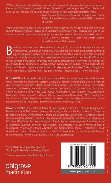 "With a sterling cast of contributors and insightful studies of indigenous knowledge and learning, Kapoor and Shizha have assembled a volume of careful and outstanding studies. Their collection will be of use to all scholars and decision makers interested in how indigenous knowledge works." - Arun Agrawal, Professor and Associate Dean for Research in the School of Natural Resources and Environment (SNRE), University of Michigan