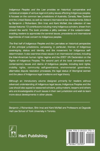 Indigenous Peoples and the Law provides an historical, comparative and contextual analysis of various legal and policy issues affecting Indigenous peoples. It focuses on the common law jurisdictions of Australia, Canada, New Zealand and the United States, as well as relevant international law developments. Edited by Benjamin J Richardson, Shin Imai, and Kent McNeil, this collection of new essays features 13 contributors including many Indigenous scholars, drawn from around the world. The book provides a pithy overview of the subject-matter, enabling readers to appreciate the seminal issues, precedents and international legal trends of most concern to Indigenous peoples. The first half of Indigenous Peoples and the Law takes an historical perspective of the principal jurisdictions, canvassing, in particular, themes of Indigenous sovereignty, status and identity, and the movement for Indigenous self-determination. It also examines these issues in an international context, including the Inter-American human rights regime and the 2007 UN Declaration on the Rights of Indigenous Peoples. The second part of the book canvasses some contemporary issues and claims of Indigenous peoples, including land rights, mobility rights, community self-governance, environmental governance, alternative dispute resolution processes, the legal status of Aboriginal women and the place of Indigenous legal traditions and legal theory. Although an introductory volume designed primarily for readers without advanced understanding of Indigenous legal issues, Indigenous Peoples and the Law should also appeal to seasoned scholars, policy-makers, lawyers and others who are knowledgeable of such issues in their own jurisdiction and wish to learn more about developments in other places.