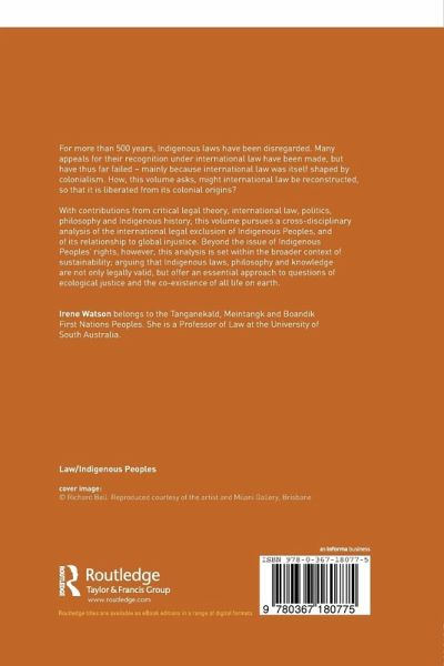 With contributions from critical legal theory, international law, critical anthropology, politics, philosophy and Indigenous history, this volume pursues a cross-disciplinary analysis of the international legal exclusion of Indigenous Peoples, and of its relationship to global injustice. Beyond the issue of Indigenous Peoples' rights, however, this analysis is set within the broader context of sustainability; arguing that Indigenous laws, philosophy and knowledge are not only legally valid, but offer an essential approach to questions of ecological justice and the co-existence of all life on earth.