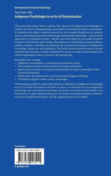 This groundbreaking volume explores the capacity of Indigenous psychologies to counter the effects of longstanding colonization on traditional cultures and habitats. It chronicles the editor's extensive research in the Lacandon Rainforest in southern Mexico, illustrating respectful methodologies and authentic friendship-a decolonized approach by a committed scholar-and the concerted efforts of community members to preserve their history and heritage. Descriptions of collaborations among children, parents, students, and elders demonstrate the continued passing on of indigenous knowledge, culture, art, and spirituality. This richly layered narrative models cultural resilience and resistance in their transformative power to replace environmental and cultural degradation with co-existence and partnership.
