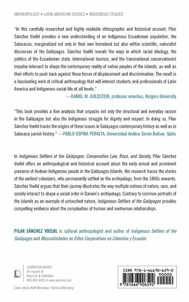 Pilar Sánchez Voelkl offers an anthropological account of the early arrival and prominence of Indigenous peoples in the Galápagos Islands. Their history and everyday life reveal how multiple notions of nature, race, and society travel and meet, shaping the way conservation thought is translated into law.