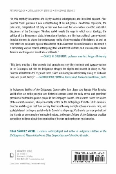 Pilar Sánchez Voelkl offers an anthropological account of the early arrival and prominence of Indigenous peoples in the Galápagos Islands. Their history and everyday life reveal how multiple notions of nature, race, and society travel and meet, shaping the way conservation thought is translated into law.