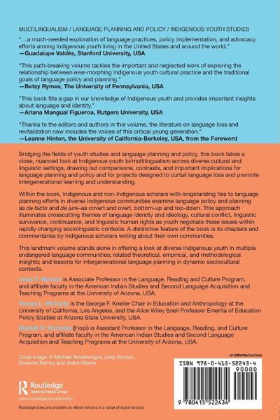 Bridging the fields of youth studies and language planning and policy, this book takes a close, nuanced look at Indigenous youth bi/multilingualism across diverse cultural and linguistic settings, drawing out comparisons, contrasts, and important implications for language planning and policy and for projects designed to curtail language loss. Indigenous and non-Indigenous scholars with longstanding ties to language planning efforts in diverse Indigenous communities examine language policy and planning as de facto and de jure - as covert and overt, bottom-up and top-down. This approach illuminates crosscutting themes of language identity and ideology, cultural conflict, and linguistic human rights as youth negotiate these issues within rapidly changing sociolinguistic contexts. A distinctive feature of the book is its chapters and commentaries by Indigenous scholars writing about their own communities. This landmark volume stands alone in offering a look at diverse Indigenous youth in multiple endangered language communities, new theoretical, empirical, and methodological insights, and lessons for intergenerational language planning in dynamic sociocultural contexts.