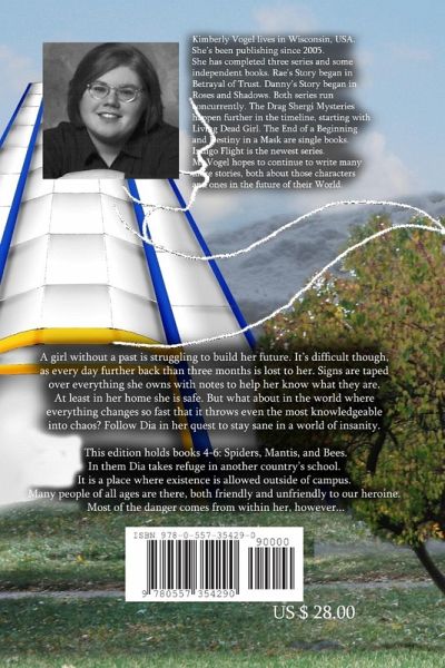 A girl without a past is struggling to build her future. It's difficult though, as every day further back than three months is lost to her. Signs are taped over everything she owns with notes to help her know what they are. At least in her home she is safe. But what about in the world where everything changes so fast that it throws even the most knowledgeable into chaos? Follow Dia in her quest to stay sane in a world of insanity. This edition holds books 4-6: Spiders, Mantis, and Bees. In them Dia takes refuge in another country's school. It is a place where existence is allowed outside of campus. Many people of all ages are there, both friendly and unfriendly to our heroine. Most of the danger comes from within her, however...