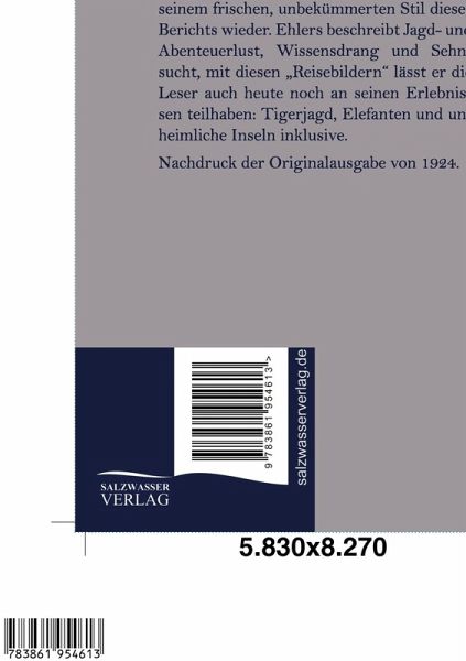 Otto Ehlers bereiste im Jahr 1890 als einer der ersten Deutschen das ferne Indien. Seine Passion für das Reisen spiegelt sich in seinem frischen, unbekümmerten Stil dieses Berichts wieder. Ehlers beschreibt Jagd- und Abenteuerlust, Wissensdrang und Sehnsucht und mit diesen Reisebildern lässt er die Leser noch heute an seinen Erlebnissen teilhaben. Begleiten Sie Otto Ehlers auf seiner Reise: Tigerjagd, Elefanten und unheimliche Inseln inklusive. Nachdruck der Originalausgabe von 1924.
