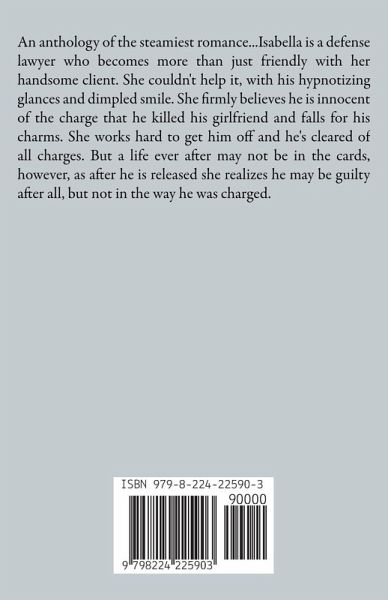 An anthology of the steamiest romance...Isabella is a defense lawyer who becomes more than just friendly with her handsome client. She couldn't help it, with his hypnotizing glances and dimpled smile. She firmly believes he is innocent of the charge that he killed his girlfriend and falls for his charms. She works hard to get him off and he's cleared of all charges. But a life ever after may not be in the cards, however, as after he is released she realizes he may be guilty after all, but not in the way he was charged.