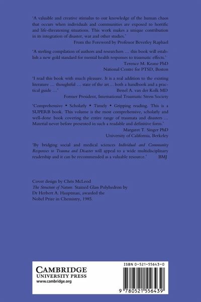 Part I. Introduction: 1. Trauma and disaster R. J. Ursano, C . S. Fullerton and B. G. McCaughey; Part II. The Nature of Traumatic Stress: 2. The psychology of terror and its aftermath H. C. Holloway and C. S. Fullerton; 3. Exposure to traumatic death: the nature of the stressor R. J. Ursano and J. E. McCarroll; 4. Psychological and psychiatric aspects of technological disasters L. Weisaeth; 5. Traumatic effects of accidents U. F. Malt; 6.The human experience of earthquakes B. G. McCaughey, K. J. Hoffman and C. H. Llewellyn; 7. Psychological effects of toxic contamination B. L. Green, J. D . Lindy and M. C. Grace; Part III. The Role of Psychosocial Contaxt in Responses to Trauma and Disasters: 8. Social support and perceived control as moderators of responses to dioxin and flood exposure S. D. Solomon and E. M. Smith; 9. Debriefing following traumatic exposure A. Y. Shalev; 10. Relocation stress following natural disasters E. T. Gerrity and P. Steinglass; 11. Group reactions to trauma: an avalanche accident P. Herlofsen; 12. Community responses to disaster: the Gander plane crash K. M. Wright and P. T. Bartone; Part IV. Responses to Trauma Across the Life Cycle: 13. Children of war and children at war: child victims of terrorism in Mozambique J. A. Shaw and J. J. Harris; 14. Stress and coping with the trauma of war in the Persian Gulf: the hospital ship USNS Comfort M. P. Dinneen, R. J. Pentzien and J. M. Mateczun; 15. Long-term sequelae of combat in World War II, Korea and Vietnam: a comparative study R. Rosenheck and A. Fontana; 16. Psychophysiological aspects of chronic stress following trauma L. M. Davidson and A. Baum; 17. Individual and community reactions to the Kentucky floods: findings from a longitudinal study of older adults F. H. Norris, J. F. Phifer and K. Kaniasty; Conclusions; 18. The structure of human chaos R. J. Ursano, B. G. McCaughey and C .S. Fullerton.