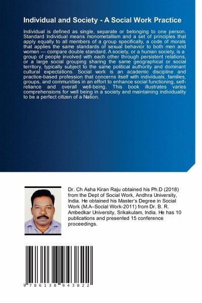 Individual is defined as single, separate or belonging to one person. Standard Individual means monometallism and a set of principles that apply equally to all members of a group specifically, a code of morals that applies the same standards of sexual behavior to both men and women - compare double standard. A society, or a human society, is a group of people involved with each other through persistent relations, or a large social grouping sharing the same geographical or social territory, typically subject to the same political authority and dominant cultural expectations. Social work is an academic discipline and practice-based profession that concerns itself with individuals, families, groups, and communities in an effort to enhance social functioning, self-reliance and overall well-being. This book illustrates varies comprehensions for well being in a society and maintaining individuality to be a perfect citizen of a Nation.