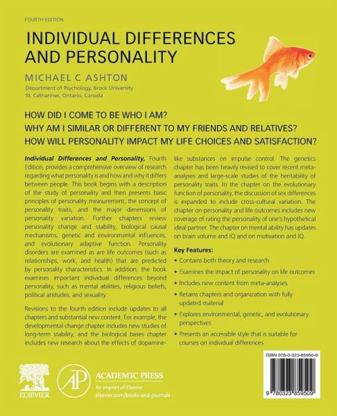 Features: Contains both theory and research. Examines the impact of personality on life outcomes. Includes new content from meta-analyses and large sample size studies. Retains chapters and organization with fully updated material. Explores environmental, genetic and evolutionary perspectives. Presents an accessible style that is suitable for courses on individual difference