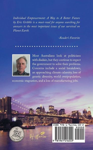 Individual Empowerment: A Way to A Better Future by Eric Gribble is a must-read for anyone searching for answers to the most important issues of our survival on Planet Earth. -Reader's Favorite Most Australians look at politicians with disdain, but they continue to expect the government to solve their problems. Concerns include a social breakdown, an approaching climate calamity, loss of genetic diversity, world overpopulation, economic stagnation, and a loss of manufacturing jobs.
