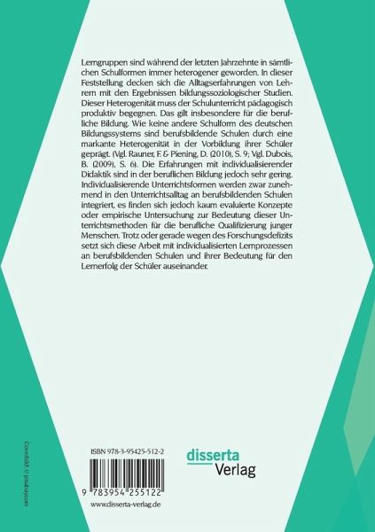 Lerngruppen sind während der letzten Jahrzehnte in sämtlichen Schulformen immer heterogener geworden. In dieser Feststellung decken sich die Alltagserfahrungen von Lehrern mit den Ergebnissen bildungssoziologischer Studien. Dieser Heterogenität muss der Schulunterricht pädagogisch produktiv begegnen. Das gilt insbesondere für die berufliche Bildung. Wie keine andere Schulform des deutschen Bildungssystems sind berufsbildende Schulen durch eine markante Heterogenität in der Vorbildung ihrer Schüler geprägt. (Vgl. Rauner, F. & Piening, D. (2010), S. 9; Vgl. Dubois, B. (2009), S. 6).Die Erfahrungen mit individualisierender Didaktik sind in der beruflichen Bildung jedoch sehr gering. Individualisierende Unterrichtsformen werden zwar zunehmend in den Unterrichtsalltag an berufsbildenden Schulen integriert, es finden sich jedoch kaum evaluierte Konzepte oder empirische Untersuchung zur Bedeutung dieser Unterrichtsmethoden für die berufliche Qualifizierung junger Menschen. Trotz oder gerade wegen des Forschungsdefizits setzt sich diese Arbeit mit individualisierten Lernprozessen an berufsbildenden Schulen und ihrer Bedeutung für den Lernerfolg der Schüler auseinander.