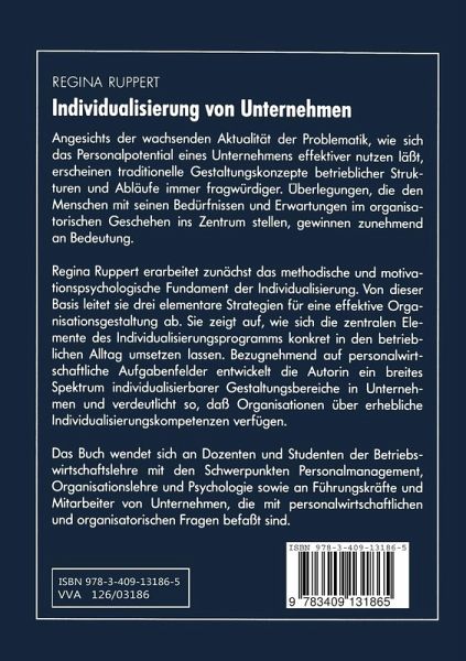 Bezugnehmend auf personalwirtschaftliche Aufgabenfelder entwickelt die Autorin ein breites Spektrum individualisierbarer Gestaltungsbereiche in Unternehmen und verdeutlicht so, daß Organisationen über erhebliche Individualisierungskompetenzen verfügen.