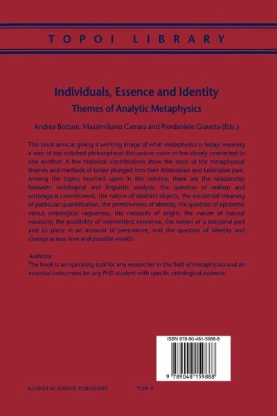 Andrea Bottani Massimiliano Carrara Pierdaniele Giaretta What do we do when we do metaphysics? The aim of this introduction is to give a provisional answer to this question, and then to explain the subtitle of the volume. It is easy to observe that when we do meta physics we engage in a linguistic activity, mainly consisting of uttering declarative sentences that are not very clear to most people. That is true, but, of course, it is not very informative. What do we speak of when we do metaphysics? A traditional answer could be: we speak of what things really are, so suggesting that things can appear in a way that is different from the way they really are. So understood, meta physics is about the sense, or the senses, of "real being". A question that immediately arises is whether the sense of being is unique or is different for different types of things. Another question is whether it is possible that something could appear to be, but really not be. Modem analytic metaphysicians usually answer that the sense of being is unique, while acknowledging that there are different kinds of things, and that to say that something could appear to be but really not be is a plain contradiction, unless what is understood is that it could appear to us that there is something having such and such features, but viii Individuals, Essence, and Identity really there is no such a thing.