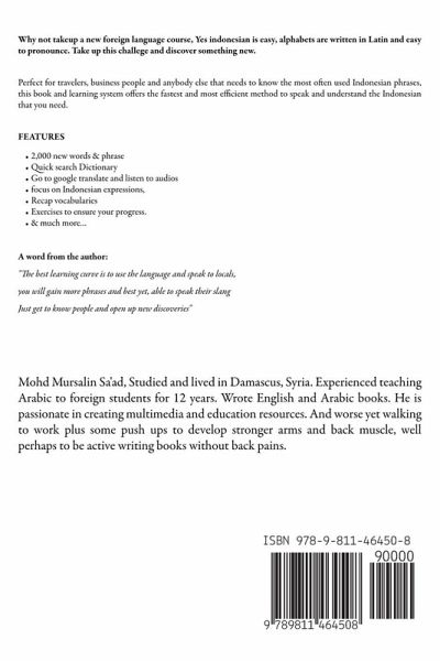 Do you have intention to visit Indonesia, Bali, Jakarta, surabaya, Batam Why not takeup a new foreign language course, Yes indonesian is easy, alphabets are written in Latin and easy to pronounce. Take up this challege and discover something new. Perfect for travelers, business people and anybody else that needs to know the most often used Indonesian phrases, this book and learning system offers the fastest and most efficient method to speak and understand the Indonesian that you need. Take the first steps of your new language journey with Indonesian Shortcuts and open a new world of linguistic and communication possibilities! CONSISTS OF: 10 fundamental topics that are used in everyday life, Learning tools including 30 dialogues, expressions, Flashcards for vocabulary practice, Quizzes to ensure your progress. Fill in the blanks; Practical translation FEATURES2,000 new words & phrase Quick search Dictionary Go to google translate and listen to audios focus on Indonesian expressions, Recap vocabularies Exercises to ensure your progress. & much more… BENEFITS:Relevant and practical phrase when talking to locals Practical dialogues Lots of vocabularies Understand Indonesian culture Questions: What foreign language to learn? It depends on your objective of learning. If you intend to travel or do business in Indonesia, then I suppose learning the Indonesian language does help a lot because most locals speak Indonesia, when you speak their language, you relate yourself to the people around you. Is it easy to learn speaking Indonesia? Yes, Letters and words written in Latin, no transliteration. Only the pronunciation is different, but wants you get the sound of it, you can definitely speak Indonesia. How fast can I learn? Depends on your commitment and time. It is best to mingle with the locals. Why learn Indonesian language? Firstly, the tourist industry is expanding, some people preferred to visit Asian countries, because it is cheaper. Why spend thousands of dollars to Europe? Secondly; Opportunities to get products cheaper and import to your country. Thirdly; cheap place to spend in winter such as accommodation and food. A word from the author: "The best learning curve is to use the language and speak to locals, you will gain more phrases and best yet, able to speak their slang Just get to know people and open up new discoveries"