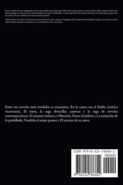 Como miembro de una congregación conservadora Amber Lytton sabe que no debe ceder a la tentación y su mayor anhelo es llegar virgen al matrimonio. Hasta que llega a su vida ese macho latino llamado Evan Cortez, el indomable : su nuevo jefe. Él hará de todo por llevársela a la cama porque esa gata rubia de tacones se le hace la difícil y él no espera perder la partida. Amber luchará con todas sus fuerzas por resistir la tentación, ella se niega a ser el juguete de ese macho latino avasallante y egoísta, no será una aventura como las demás, ella tiene otros planes y no se rendirá hasta salirse con la suya.