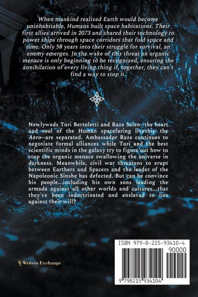 Newlyweds Tori Bertoletti and Raze Salen--the heart and soul of the Human spacefaring liveship the Aero--are separated. Ambassador Raze continues to negotiate formal alliances while Tori and the best scientific minds in the galaxy try to figure out how to stop the organic menace swallowing the universe in darkness. Meanwhile, civil war threatens to erupt between Earthers and Spacers and the leader of the Napoleonic Sinshe has defected. But can he convince his people...including his own sons leading the armada against all other worlds and cultures...that they've been indoctrinated and enslaved to lies against their will?