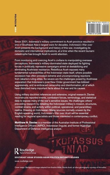 Since 2001, Indonesia's military commitment to Aceh province resulted in one of Southeast Asia's largest wars for decades. Indonesia's War over Aceh presents the background and history of this war, investigating its domestic and international implications, at a time when the recent tsunami catastrophe has brought Aceh to world attention. Using military doctrinal references and extensive, original research, Davies reconstructs reported events, combatant forces, terminology and statistical data to expose many of the war's sensitive issues. He challenges others' preceding research by detailing the Indonesian military's mission, structures, combat strains, and activity within political, operational and paramilitary realms. Drawing on Indonesian-Malay sources normally unseen by the English-speaking world, Indonesia's War over Aceh will be essential reading for regional specialists and those interested in contemporary conflict.