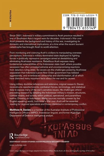 Since 2001, Indonesia's military commitment to Aceh province resulted in one of Southeast Asia's largest wars for decades. Indonesia's War over Aceh presents the background and history of this war, investigating its domestic and international implications, at a time when the recent tsunami catastrophe has brought Aceh to world attention. Using military doctrinal references and extensive, original research, Davies reconstructs reported events, combatant forces, terminology and statistical data to expose many of the war's sensitive issues. He challenges others' preceding research by detailing the Indonesian military's mission, structures, combat strains, and activity within political, operational and paramilitary realms. Drawing on Indonesian-Malay sources normally unseen by the English-speaking world, Indonesia's War over Aceh will be essential reading for regional specialists and those interested in contemporary conflict.