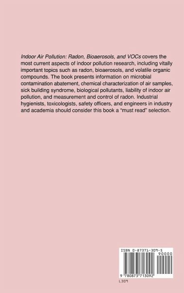 Indoor Air Pollution: Radon, Bioaerosols, and VOCs covers the most current aspects of indoor pollution research, including vitally important topics such as radon, bioaerosols, and volatile organic compounds. The book presents information on microbial contamination abatement, chemical characterization of air samples, sick building syndrome, biological pollutants, liability of indoor air pollution, and measurement and control of radon. Industrial hygienists, toxicologists, safety officers, and engineers in industry and academia should consider this book a "must read" selection.