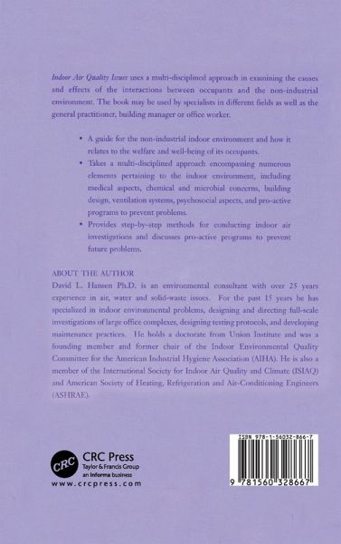 Examines problems such as microbial contamination, building design, ventilation systems and psychological effects. It uses a multi-disciplined approach in examining the causes and effects of the interactions between occupants and non-industrial environments. The text also provides the reader with a tool for diagnosing IAQ problems and effectively reducing them.