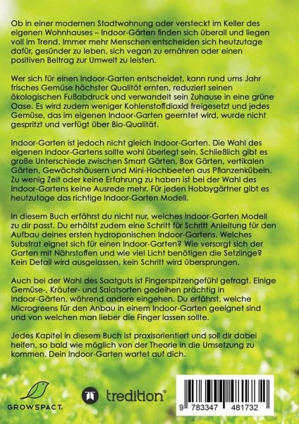 Ob in einer modernen Stadtwohnung oder versteckt im Keller des eigenen Wohnhauses - Indoor-Gärten finden sich überall und liegen voll im Trend. Immer mehr Menschen entscheiden sich heutzutage dafür, gesünder zu leben, sich vegan zu ernähren oder einen positiven Beitrag zur Umwelt zu leisten. Wer sich für einen Indoor-Garten entscheidet, kann rund ums Jahr frisches Gemüse höchster Qualität ernten, reduziert seinen ökologischen Fußabdruck und verwandelt sein Zuhause in eine grüne Oase. Es wird zudem weniger Kohlenstoffdioxid freigesetzt und jedes Gemüse, das im eigenen Indoor-Garten geerntet wird, wurde nicht gespritzt und verfügt über Bio-Qualität. Indoor-Garten ist jedoch nicht gleich Indoor-Garten. Die Wahl des eigenen Indoor-Gartens sollte wohl überlegt sein. Schließlich gibt es große Unterschiede zwischen Smart Gärten, Box Gärten, vertikalen Gärten, Gewächshäusern und Mini-Hochbeeten aus Pflanzenkübeln. Zu wenig Zeit oder keine Erfahrung zu haben ist bei der Wahl des Indoor-Gartens keine Ausrede mehr. Für jeden Hobbygärtner gibt es heutzutage das richtige Indoor-Garten-Modell. In diesem Buch erfährst du nicht nur, welches Indoor-Garten-Modell zu dir passt. Du erhältst zudem eine Schritt-für-Schritt-Anleitung für den Aufbau deines ersten hydroponischen Indoor-Gartens. Welches Substrat eignet sich für einen Indoor-Garten? Wie versorgt sich der Garten mit Nährstoffen und wie viel Licht benötigen die Setzlinge? Kein Detail wird ausgelassen, kein Schritt wird übersprungen. Auch bei der Wahl des Saatguts ist Fingerspitzengefühl gefragt. Einige Gemüse-, Kräuter- und Salatsorten gedeihen prächtig in Indoor-Gärten, während andere eingehen. Du erfährst, welche Microgreens für den Anbau in einem Indoor-Garten geeignet sind und von welchen man lieber die Finger lassen sollte. Jedes Kapitel in diesem Buch ist praxisorientiert und soll dir dabei helfen, so bald wie möglich von der Theorie in die Umsetzung zu kommen. Dein Indoor-Garten wartet auf dich.