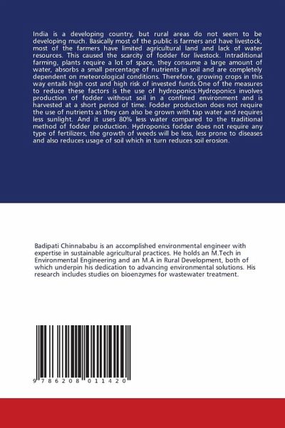 India is a developing country, but rural areas do not seem to be developing much. Basically most of the public is farmers and have livestock, most of the farmers have limited agricultural land and lack of water resources. This caused the scarcity of fodder for livestock. Intraditional farming, plants require a lot of space, they consume a large amount of water, absorbs a small percentage of nutrients in soil and are completely dependent on meteorological conditions. Therefore, growing crops in this way entails high cost and high risk of invested funds.One of the measures to reduce these factors is the use of hydroponics.Hydroponics involves production of fodder without soil in a confined environment and is harvested at a short period of time. Fodder production does not require the use of nutrients as they can also be grown with tap water and requires less sunlight. And it uses 80% less water compared to the traditional method of fodder production. Hydroponics fodder does not require any type of fertilizers, the growth of weeds will be less, less prone to diseases and also reduces usage of soil which in turn reduces soil erosion.