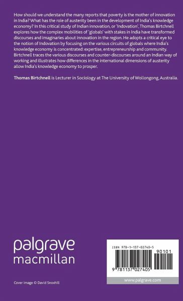 How should we understand the many reports that poverty is the mother of innovation in India? What has the role of austerity been in the development of India's knowledge economy? In this critical study of Indian innovation, or 'Indovation', Thomas Birtchnell explores how the complex mobilities of 'globals' with stakes in India have transformed discourses and imaginaries about innovation in the region. He adopts a critical eye to the notion of Indovation by focusing on the various circuits of globals where India's knowledge economy is concentrated: expertise, entrepreneurship and community. Birtchnell traces the various discourses and counter-discourses around an Indian way of working and illustrates how differences in the international dimensions of austerity allow India's knowledge economy to prosper.