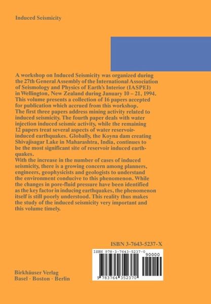 A workshop on Induced Seismicity was organized during the 27th General Assembly of the International Association of Seismology and Physics of Earth's Interior (IASPEI) in Wellington, New Zealand during January 10-21, 1994. This volume presents a collection of 16 papers accepted for publication which accrued from this workshop. The first three papers address mining activity related to induced seismicity. The fourth paper deals with water injection induced seismic activity, while the remaining 12 papers treat several aspects of water reservoir induced earthquakes. Globally, the Koyna dam creating Shivajisagar Lake in Maharashtra, India, continues to be the most significant site of reservoir-induced earthquakes. With the increase in the number of cases of induced seismicity, there is a growing concern among planners, engineers, geophysicists and geologists to understand the environment conducive to this phenomenon. While the changes in pore-fluid pressure have been identified as thekey factor in inducing earthquakes, the phenomenon itself is still poorly understood. This reality thus makes the study of the induced seismicity very important and this volume timely.