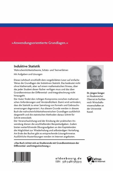 Dieses Lehrbuch erschließt dem vorgebildeten Leser auf einfache Weise die Grundlagen der Induktiven Statistik. Das bedeutet nicht ohne Mathematik, aber auf einem mathematischen Niveau, über das jeder Student dieser Fächer verfügen muss und das über Grundkenntnisse der Differential- und Integralrechnung nicht hinausgeht. Der Autor findet den richtigen Kompromiss zwischen mathematischen Anforderungen und Verständlichkeit. Damit wird verhindert, dass die Statistik zu einer Sammlung von Formeln und Gebrauchsanweisungen degeneriert. Aus diesem Grunde werden in diesem Buch die wahrscheinlichkeitstheoretischen Grundlagen ausführlich dargestellt und die statistischen Methoden daraus Schritt für Schritt entwickelt. Der Veranschaulichung und der Einübung der praktischen Anwendung dienen die anschließenden Beispielaufgaben. Zudem bieten weiterführende Übungsaufgaben an den Kapitelenden die Möglichkeit zur Wiederholung und selbständigen Vertiefung. Am Ende des Buches gibt es entsprechende Lösungshinweise. Ausführliche Musterlösungen werden im Internet angeboten. Weiteres Lehrmaterial finden Sie auf der Homepage des Autors unter .