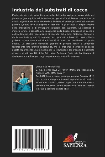 L'industria del substrato di cocco nello Sri Lanka svolge un ruolo vitale nel generare guadagni in valuta estera e opportunità di lavoro, ma esiste un divario significativo tra la domanda e l'offerta di questi prodotti nel mercato globale. Questo libro si propone di identificare gli ostacoli al miglioramento della produzione e di sviluppare strategie per superarli. La scarsità di materie prime è causata principalmente dalla bassa produzione di cocco e dall'inefficienza dei meccanismi di raccolta della lolla. Sebbene l'industria abbia una forte quota di mercato per i prodotti a base di cocco a livello globale, la sua natura ad alta intensità di lavoro è considerata un punto debole. La crescente domanda globale di prodotti lavati e tamponati rappresenta una grande opportunità, ma la presenza di prodotti di bassa qualità rappresenta una minaccia per la reputazione dei prodotti di substrato di cocco di alta qualità dello Sri Lanka. Pertanto, l'industria ha bisogno di strategie competitive per raggiungere e mantenere il successo.