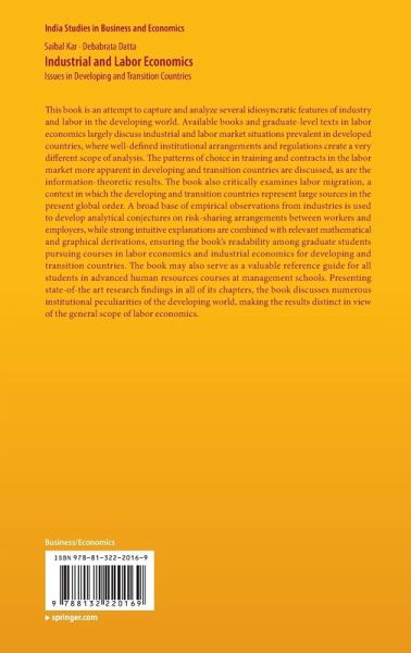 This book is an attempt to capture and analyze several idiosyncratic features of industry and labor in the developing world. Available books and graduate-level texts in labor economics largely discuss industrial and labor market situations prevalent in developed countries, where well-defined institutional arrangements and regulations create a very different scope of analysis. The patterns of choice in training and contracts in the labor market more apparent in developing and transition countries are discussed, as are the information-theoretic results. The book also critically examines labor migration, a context in which the developing and transition countries represent large sources in the present global order. A broad base of empirical observations from industries is used to develop analytical conjectures on risk-sharing arrangements between workers and employers, while strong intuitive explanations are combined with relevant mathematical and graphical derivations, ensuring the book's readability among graduate students pursuing courses in labor economics and industrial economics for developing and transition countries. The book may also serve as a valuable reference guide for all students in advanced human resources courses at management schools. Presenting state-of-the art research findings in all of its chapters, the book discusses numerous institutional peculiarities of the developing world, making the results distinct in view of the general scope of labor economics.