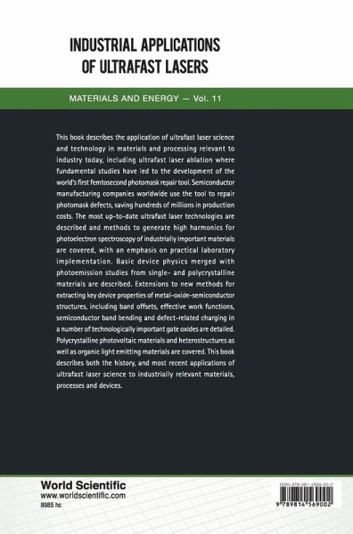This book describes the application of ultrafast laser science and technology in materials and processing relevant to industry today, including ultrafast laser ablation where fundamental studies have led to the development of the world's first femtosecond photomask repair tool. Semiconductor manufacturing companies worldwide use the tool to repair photomask defects, saving hundreds of millions in production costs. The most up-to-date ultrafast laser technologies are described and methods to generate high harmonics for photoelectron spectroscopy of industrially important materials are covered, with an emphasis on practical laboratory implementation. Basic device physics merged with photoemission studies from single- and polycrystalline materials are described. Extensions to new methods for extracting key device properties of metal-oxide-semiconductor structures, including band offsets, effective work functions, semiconductor band bending and defect-related charging in a number of technologically important gate oxides are detailed. Polycrystalline photovoltaic materials and heterostructures as well as organic light emitting materials are covered. This book describes both the history, and most recent applications of ultrafast laser science to industrially relevant materials, processes and devices.
