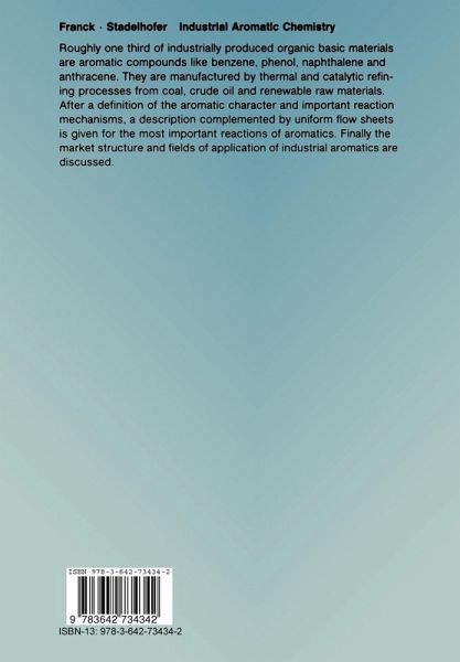 Aromatic organic hydrocarbons and heterocycles represent a bulk of about one third of all industrially produced organic basic materials. Aromatic compounds such as benzene, phenol, naphthalene, anthracene, and their homologues, are derived from raw materials, coal, crude oil and biogenic resources by thermal and catalytic refining processes. This book introduces the chemistry of aromatics with a brief discussion of the aromatic character and a survey of historical aspects, particularly the development of the organic dye industry during the 19th century. The main emphasis of the book is to give a clear prospect of industrial processes for the production and the derivatisation of aromatics with consistent flow diagrams. Economical aspects of by- and side-products are especially regarded. For the most important aromatics an analysis of the international market included their derivatives: polymers, pesticides, dyes, pigments and drugs. Professional scientists, managers and students in chemistry and chemical engineering will find a wealth of information for their career and daily work.