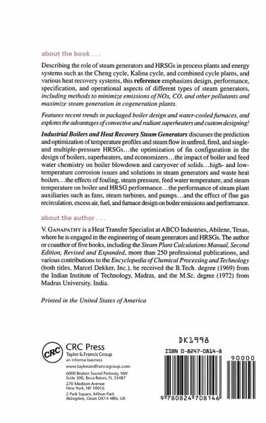Preface 1. Steam and Power Systems 2. Heat Recovert Boilers 3. Steam Generators 4. Emission Control in Boilers and HRSGs 5. Emission Steam Plant Calculations 6. Fuels Combustion and Efficiency of Boilers and Heaters 7. Fluid Flow Valve Sizing and Pressure Drop Calculations 8. Heat Transfer Equipment Design and Performance 9. Fans Pumps and Steam Turbines Appendix 1: A Quiz on Boilers and HRSGs Appendix 2: Conversion Factors Appendix 3: Tables Glossary Bibliography Index