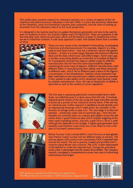 This publication presents material for chemistry teachers on a variety of aspects of the UK chemical and pharmaceutical industries in the late 1990s. it covers the economic dimension of the industries, some environmental concerns and constraints, and the issue of scaling up processes from the laboratory bench to full scale production. It is designed to be read by teachers to update themselves personally and also to be used by post-16 students (A-level, AS, Scottish Higher and GNVQ/GSVQ). There are questions in the text that deal with chemical principles which will be familiar to post-16 students but which are set in unfamiliar contexts. A case study approach is used, with studies drawn from a number of areas.