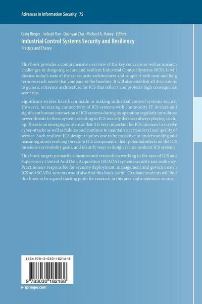This book provides a comprehensive overview of the key concerns as well as research challenges in designing secure and resilient Industrial Control Systems (ICS). It will discuss today's state of the art security architectures and couple it with near and long term research needs that compare to the baseline. It will also establish all discussions to generic reference architecture for ICS that reflects and protects high consequence scenarios. Significant strides have been made in making industrial control systems secure. However, increasing connectivity of ICS systems with commodity IT devices and significant human interaction of ICS systems during its operation regularly introduces newer threats to these systems resulting in ICS security defenses always playing catch-up. There is an emerging consensus that it is very important for ICS missions to survive cyber-attacks as well as failures and continue to maintain a certain level and quality of service. Suchresilient ICS design requires one to be proactive in understanding and reasoning about evolving threats to ICS components, their potential effects on the ICS mission's survivability goals, and identify ways to design secure resilient ICS systems. This book targets primarily educators and researchers working in the area of ICS and Supervisory Control And Data Acquisition (SCADA) systems security and resiliency. Practitioners responsible for security deployment, management and governance in ICS and SCADA systems would also find this book useful. Graduate students will find this book to be a good starting point for research in this area and a reference source.