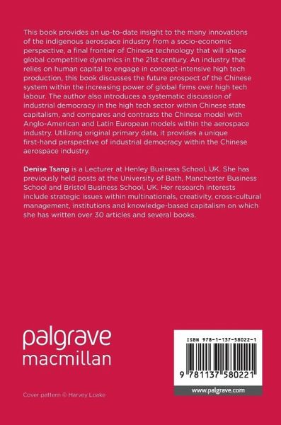 This book provides an up-to-date insight to the many innovations of the indigenous aerospace industry from a socio-economic perspective, a final frontier of Chinese technology that will shape global competitive dynamics in the 21st century. An industry that relies on human capital to engage in concept-intensive high tech production, this book discusses the future prospect of the Chinese system within the increasing power of global firms over high tech labour. The author also introduces a systematic discussion of industrial democracy in the high tech sector within Chinese state capitalism, and compares and contrasts the Chinese model with Anglo-American and Latin European models within the aerospace industry. Utilizing original primary data, it provides a unique first-hand perspective of industrial democracy within the Chinese aerospace industry.