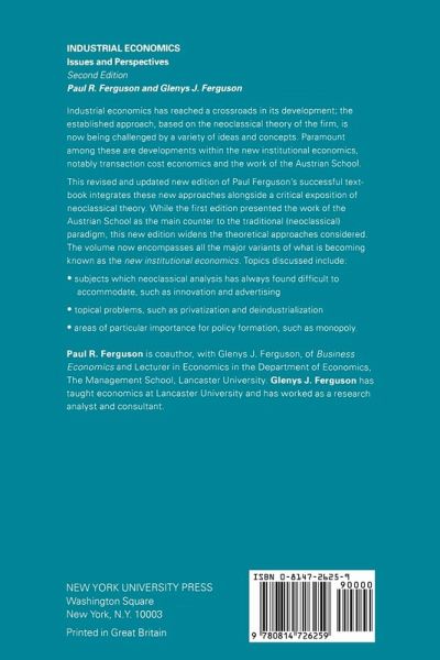 Industrial economics has reach a cross roads in its development; the established approach, based on the neoclassical theory of the firm, it now being challenged by a variety of ideas and concepts. Paramount among these are developments within institutions, economics and the world of the Austrian School. This revised and updated edition of Paul Ferguson's successful textbook integrates these new approaches into a critical exposition of neoclassical theory. While the first edition presented the work of the Austrian School as the main counter to the traditional (neoclassical) paradigm, this new edition widens the theoretical approaches considered. The volume now encompasses all the major variants of what is becoming known as the new institutional economics. Topics discussed include: Subjects which neoclassical analysis has always found difficult to accommodate, such as innovation and advertising, topical problems, such as privatization and deindustrialization. Areas of particular importance for policy formation, such as monopoly.