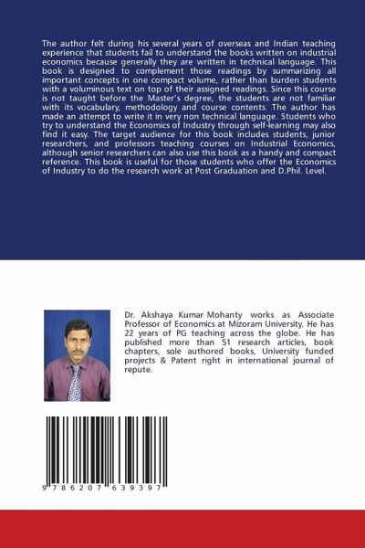 The author felt during his several years of overseas and Indian teaching experience that students fail to understand the books written on industrial economics because generally they are written in technical language. This book is designed to complement those readings by summarizing all important concepts in one compact volume, rather than burden students with a voluminous text on top of their assigned readings. Since this course is not taught before the Master's degree, the students are not familiar with its vocabulary, methodology and course contents. The author has made an attempt to write it in very non technical language. Students who try to understand the Economics of Industry through self-learning may also find it easy. The target audience for this book includes students, junior researchers, and professors teaching courses on Industrial Economics, although senior researchers can also use this book as a handy and compact reference. This book is useful for those students who offer the Economics of Industry to do the research work at Post Graduation and D.Phil. Level.