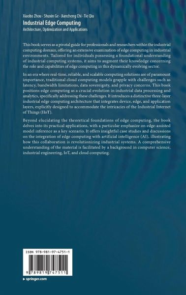 In an era where real-time, reliable, and scalable computing solutions are of paramount importance, traditional cloud computing models grapple with challenges such as latency, bandwidth limitations, data sovereignty, and privacy concerns. This book positions edge computing as a crucial evolution in industrial data processing and analytics, specifically addressing these challenges. It introduces a distinctive three-layer industrial edge computing architecture that integrates device, edge, and application layers, explicitly designed to accommodate the intricacies of the Industrial Internet of Things (IIoT).