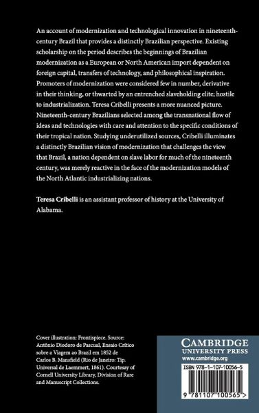 An account of modernization and technological innovation in nineteenth-century Brazil that provides a distinctly Brazilian perspective. Existing scholarship on the period describes the beginnings of Brazilian modernization as a European or North American import dependent on foreign capital, transfers of technology, and philosophical inspiration. Promoters of modernization were considered few in number, derivative in their thinking, or thwarted by an entrenched slaveholding elite hostile to industrialization. Teresa Cribelli presents a more nuanced picture. Nineteenth-century Brazilians selected among the transnational flow of ideas and technologies with care and attention to the specific conditions of their tropical nation. Studying underutilized sources, Cribelli illuminates a distinctly Brazilian vision of modernization that challenges the view that Brazil, a nation dependent on slave labor for much of the nineteenth century, was merely reactive in the face of the modernization models of the North Atlantic industrializing nations.
