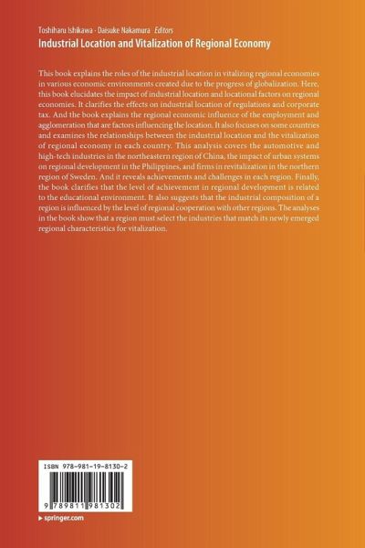 This book explains the roles of the industrial location in vitalizing regional economies in various economic environments created due to the progress of globalization. Here, this book elucidates the impact of industrial location and locational factors on regional economies. It clarifies the effects on industrial location of regulations and corporate tax. And the book explains the regional economic influence of the employment and agglomeration that are factors influencing the location. It also focuses on some countries and examines the relationships between the industrial location and the vitalization of regional economy in each country. This analysis covers the automotive and high-tech industries in the northeastern region of China, the impact of urban systems on regional development in the Philippines, and firms in revitalization in the northern region of Sweden. And it reveals achievements and challenges in each region. Finally, the book clarifies that the level of achievement inregional development is related to the educational environment. It also suggests that the industrial composition of a region is influenced by the level of regional cooperation with other regions. The analyses in the book show that a region must select the industries that match its newly emerged regional characteristics for vitalization.