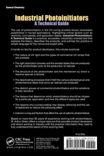 Ideal for product developers, this book provides a complete, practical, and accessible introduction to photoinitiators and their commercial use. The text describes the chemical mechanisms of how these materials work from the energy delivered by UV light and the use of the many different groups of photoinitiators in diverse applications. It highlights individual differences and discusses what particular effects they bring to end-products. Based on more than 30 years of experience working with photoinitiators, the author also covers many relevant practical factors, such as surface and depth cure, oxygen inhibition, and yellowing effects.