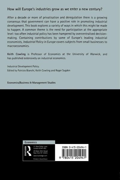 After a decade or more of privatisation and deregulation there is a growing consensus that government can have a positive role in promoting industrial development. This book explores a variety of ways in which this might be made to happen. A common theme is the need for participation at the appropriate level: too often industrial policy has been hampered by overcentralised decision-making. Containing contributions by some of Europe's leading industrial economists, Industrial Policy for Europe covers subjects from small business to macroeconomics.
