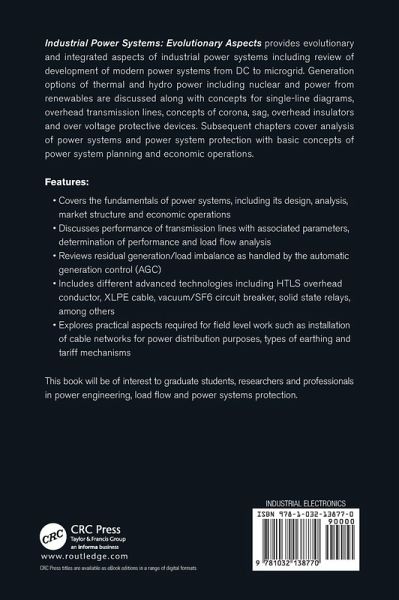 Industrial Power Systems: Evolutionary Aspects provides evolutionary and integrated aspects of industrial power systems including review of development of modern power systems from DC to microgrid. Generation options of thermal and hydro power including nuclear and power from renewables are discussed along with concepts for single-line diagram, overhead transmission lines, concepts of corona, sag, overhead insulators and over voltage protective devices. Subsequent chapters cover analysis of power systems and power system protection with basic concept of power system planning and economic operations.