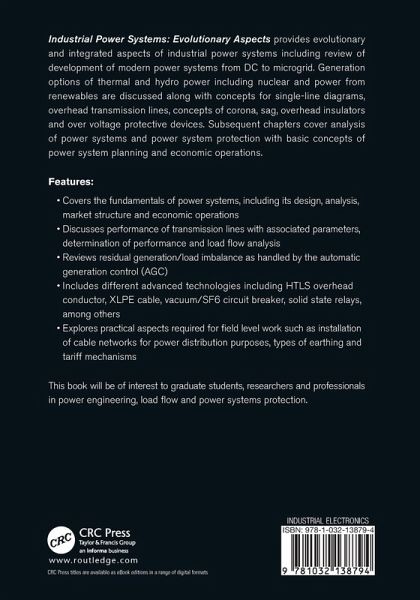 This book provides evolutionary and integrated aspects of industrial power systems including review of development of modern power system from DC to microgrid. Generation options of thermal, hydro power including nuclear and power from renewables is discussed alongwith power system analysis, their protection, planning and economic operations.